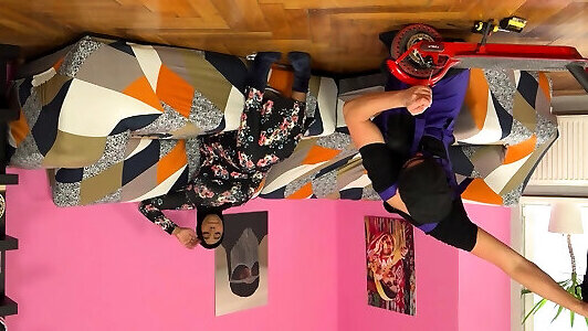 Repairer Smashing Dominatrix on Bed in Living Bedroom