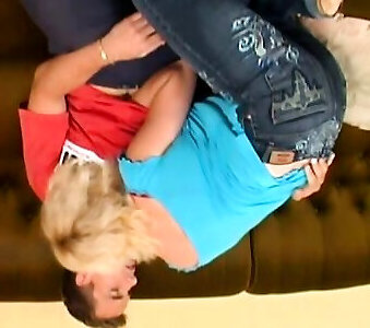 Ehefrau reacht sich und geht mit besten Freunden in den Gangbang