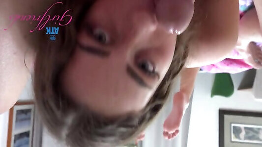 Lily Adams deep-throats you off, gives you a foot wank, and squirts