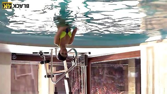 Smallish light-haired with supreme donk rides manstick by the jacuzzi