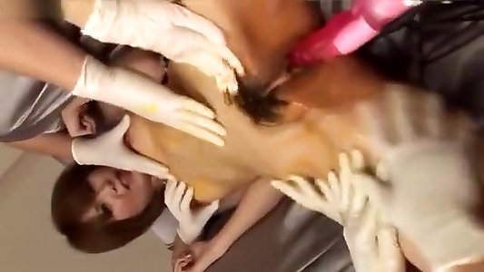 Rie Takasaka has wooly coochie banged with wand at medical
