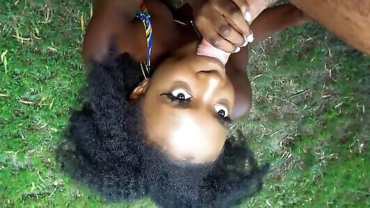 Perfect Black Babe Outdoor White Cock BJ and Anal ATM Cum Swallow