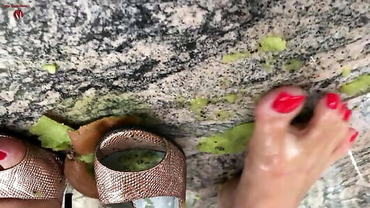 Trampling stomping leaping with spectacular aggressive legs in sandals