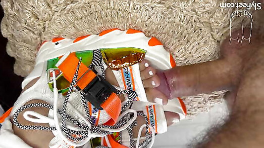 Spunking to a scholl sandal