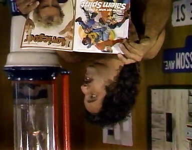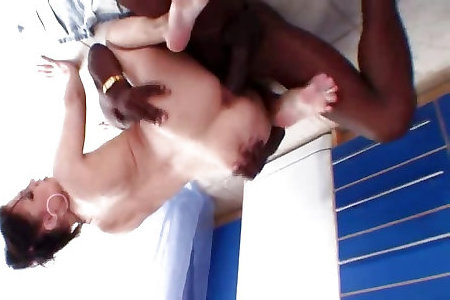 Dark-hued cougar jelly bath blows white guy and licks off jizm off her glasses