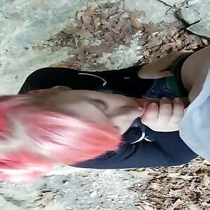 Une goth suce tranquille dans les bois