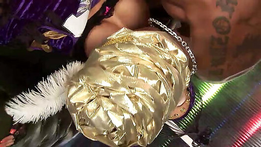 Lusty black Cougar Violette gets gang-fucked and nutted on