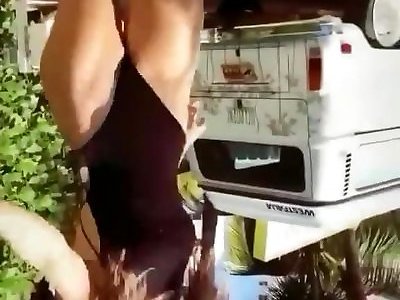 Curvy Latina norwayn dook sax juggles her bottom on a rigid stick