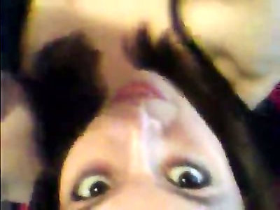 killer naughty dark-hued girl surprises her lucky boyfriend & deep-throats good-sized gigantic trouser snake down on camera!!