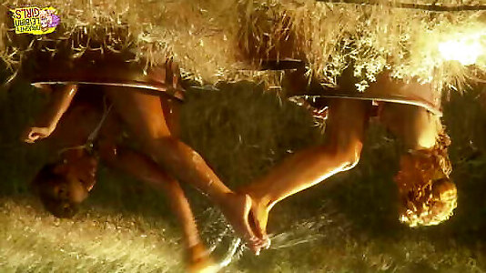 Blondes in the wild west in an open field get naked and have lesbian sex