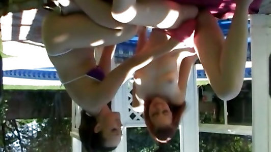Shyla Jennings and Abigaile Johnson get friendly by the pool