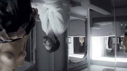 Lewd men pee on pretty face of titless horn-furious dark haired with braids
