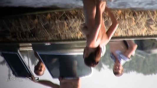 Insatiable naturist chicks simulate blowage fucky-fucky on the beach on camera