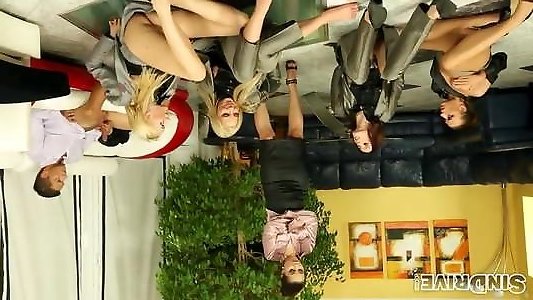 Facialized unexperienced in gang-fuck masturbating and blowing