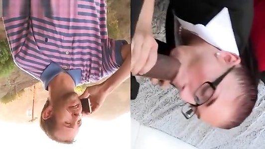 Steaming blondie glides a dark-hued cock down her gullet and then furiously humps it