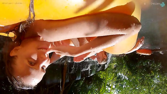 Teenie blonde Kate Bloom playing Slip and Slide and Deep-throat!
