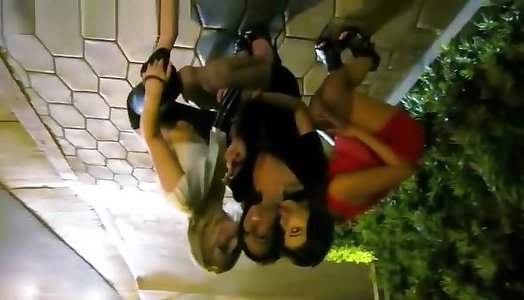 Two fishnet wearing, brunette babes, Amber and Veronica are sliding sex toys into each asshole as they attempt to massive cock