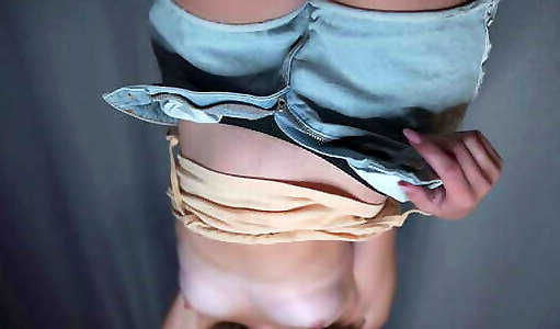 Solo woman in denim shorts entices and jacks