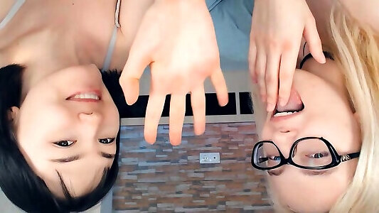 Two lesbos wailing noisily while finger pulverizing each others twats