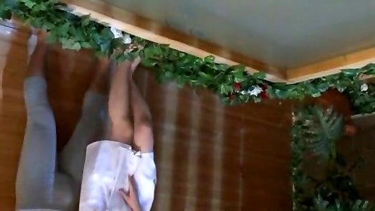 Hidden camera in a public bathroom. The ballerina washes in the bathroom with soap, trims her vagina. Zoom Two
