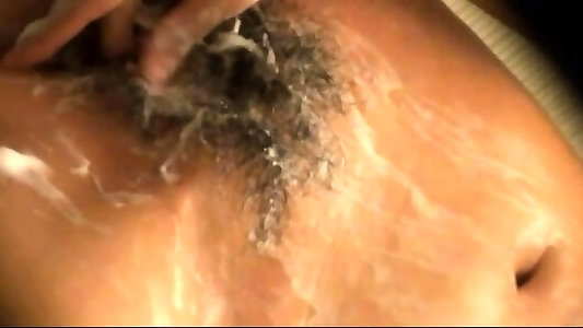 Attractive Japanese ultra-cutie soaps her nice milk cans and her furry peach