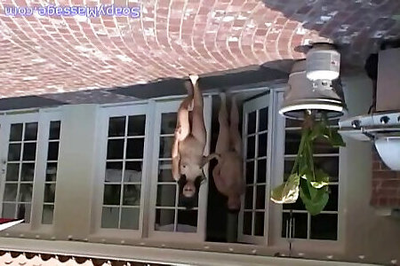 Crazy stunner fondling a studs soaped up manhood outdoors
