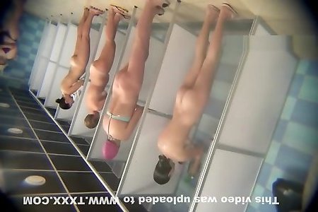 A hidden camera in a public bathroom films luxurious gals while they beast friend up