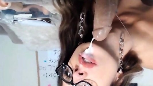 Ultra-cutie in glasses rubs labia and puts on a immense squirt show