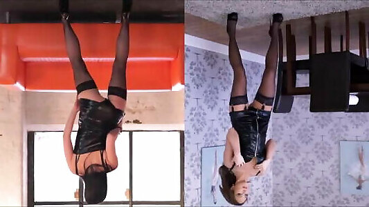 Latex female restrain bondage He also pokes her fuckbox while shes doing the splits.
