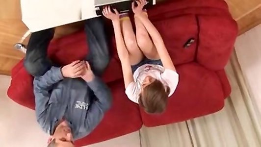 Spooning her all girl homie on the couch Chloe Cherry is eager to reach orgasm