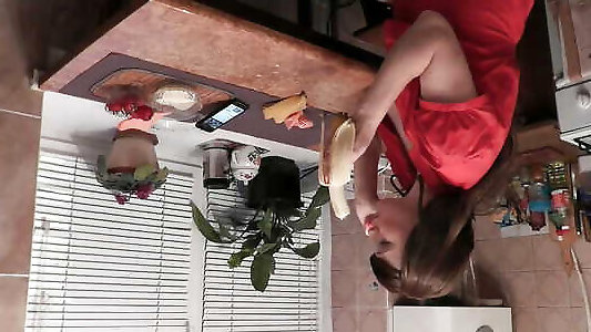 Without undies in kitchen stunning brunette Cougar tongues banana fruits with mayo finger-tickling wet fuckbox and ejaculation. Hj