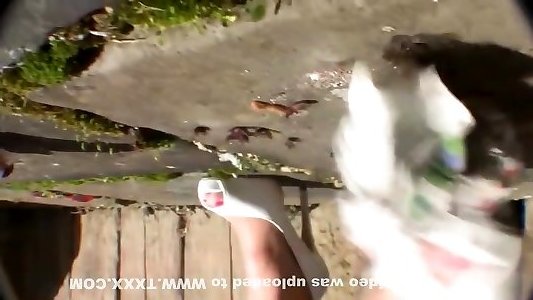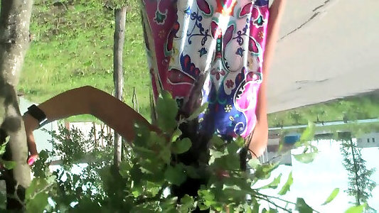 Sexy dark-haired teenager hotty on the street squishes her orbs on web cam