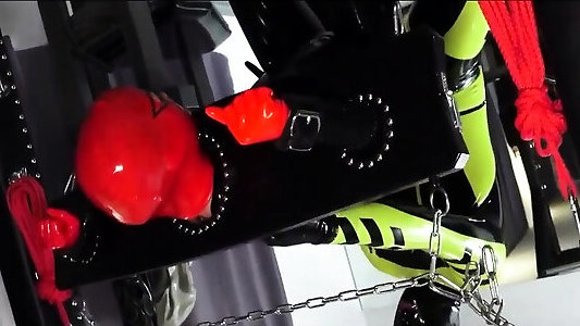 Latex fetish female domination bondage & discipline ass-fuck cable on pain