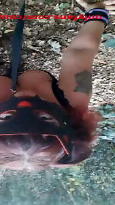 Obedient bombshell Lily Thot is strapped to a tree in the forest for rectal probing, arse poke, and slapping