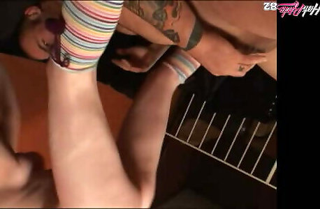 Hump with wooly cooter and the sugar dad, also with a fine feet wank and spunk on the smallish fun bags
