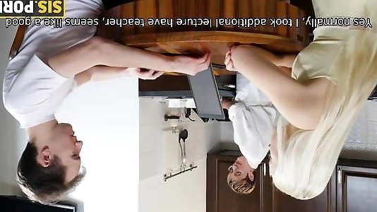 Step sister asks her stepbrother to teach her how to cook while he fucks her