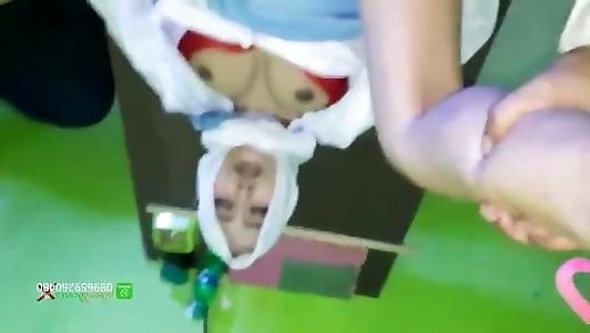 My stepbrother surprises me masturbating with my doll and joins in to have a good time the 3 of us