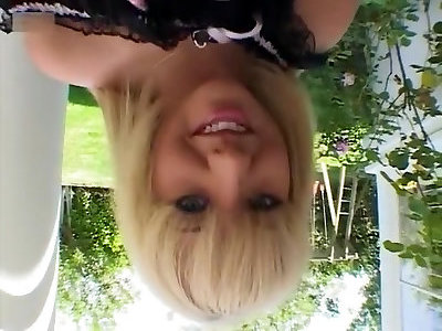 Promiscuous ash-blonde Jasmine Tame inhales a ebony cock on the steps