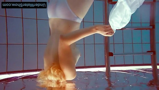 Unbelievable underwater bikini display. Trendy flexible babe swims
