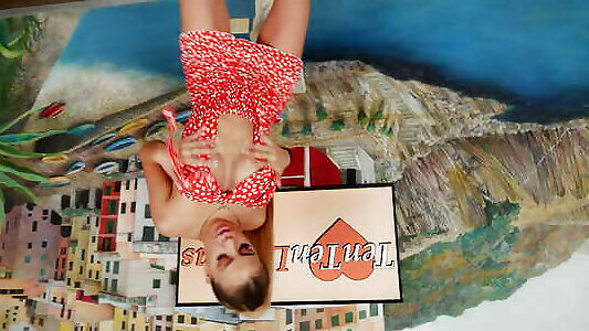 Adorable naughty teen dancing nude, inhaling fucktoy and kneading love button