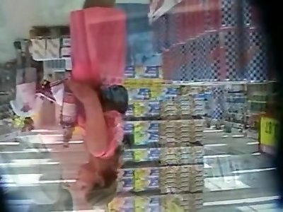 Little g-string and fresh backsides up skirts at the market