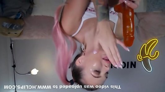 Lil schoolgirl Nicolettxxx deep-throats and scrapes all her fuck holes online