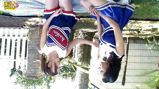 Two lesbian cheerleaders love to kiss and lick each others hairy pussy