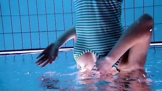 Dark-haired cock-squeezing babe Nata Szilva in the pool