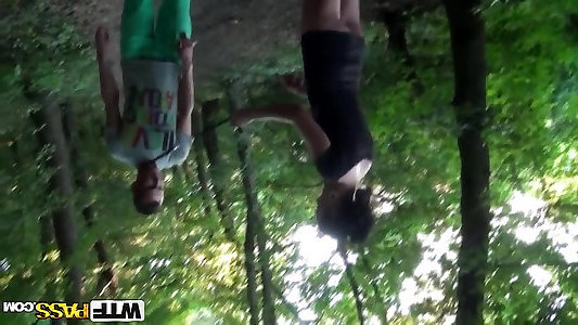 Yasmine in warm inexperienced girl gives a cute oral in a forest