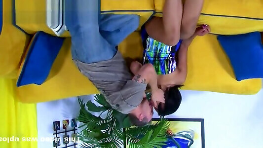 Vanessa Leon rails her tight fuck hole rocking on a enormous dark-hued wood on the sofa