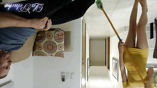 18 years old CFNM, Old man self hand job watching young and sexy cleaning lady