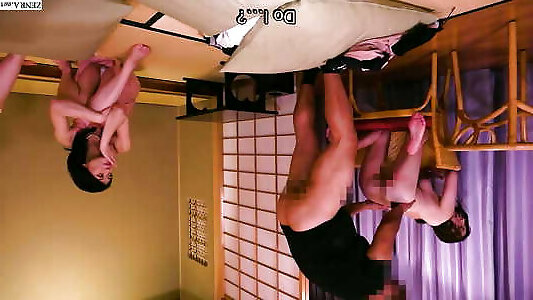 Asian synchronized fuckfest hump in bathhouse banquet hall