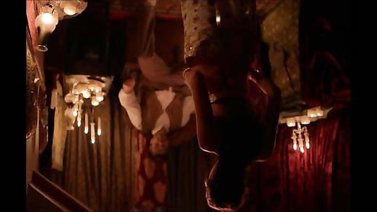 lockiger brasilianer mit bodenlosem hals windet sich, während er anal auf einem schwanz sitzt