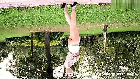 sie läuft nackt im öffentlichen park herum. bodenlose präsentation